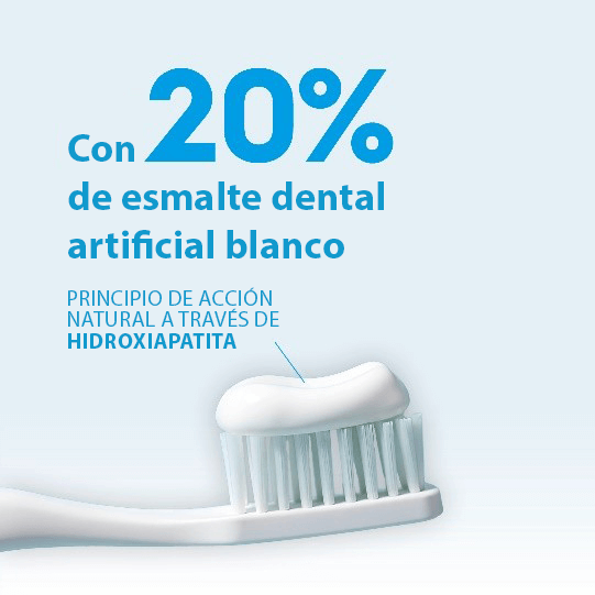 También contiene esmalte biomimético (hidroxiapatita) enriquecido con calcio, que protege el esmalte natural de nuestros dientes frente al desgaste.