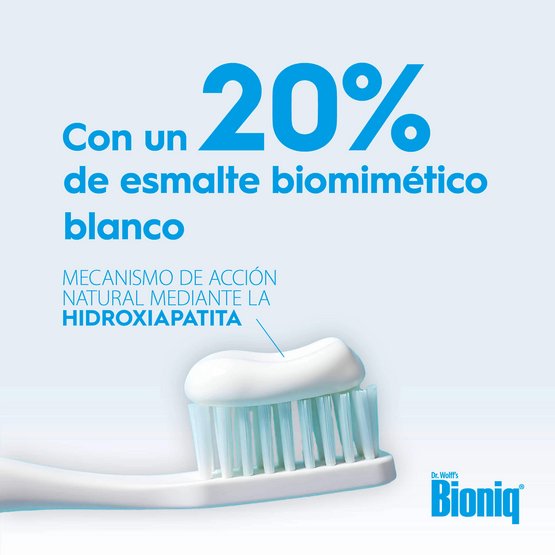 | Hydroxyapatite | El principal ingrediente activo presente en todos los productos Bioniq®. Este ingrediente: - Regenera las zonas dañadas del esmalte y la dentina - Control biomimético de la biopelícula: Evita que las bacterias se adhieran a los dientes- Sella los cuellos expuestos de los dientes y reduce la hipersensibilidad de la dentina - Forma una capa protectora sobre los dientes, brindando una protección adicional frente a las caries - Protección clínicamente probada frente a la placa y las caries |